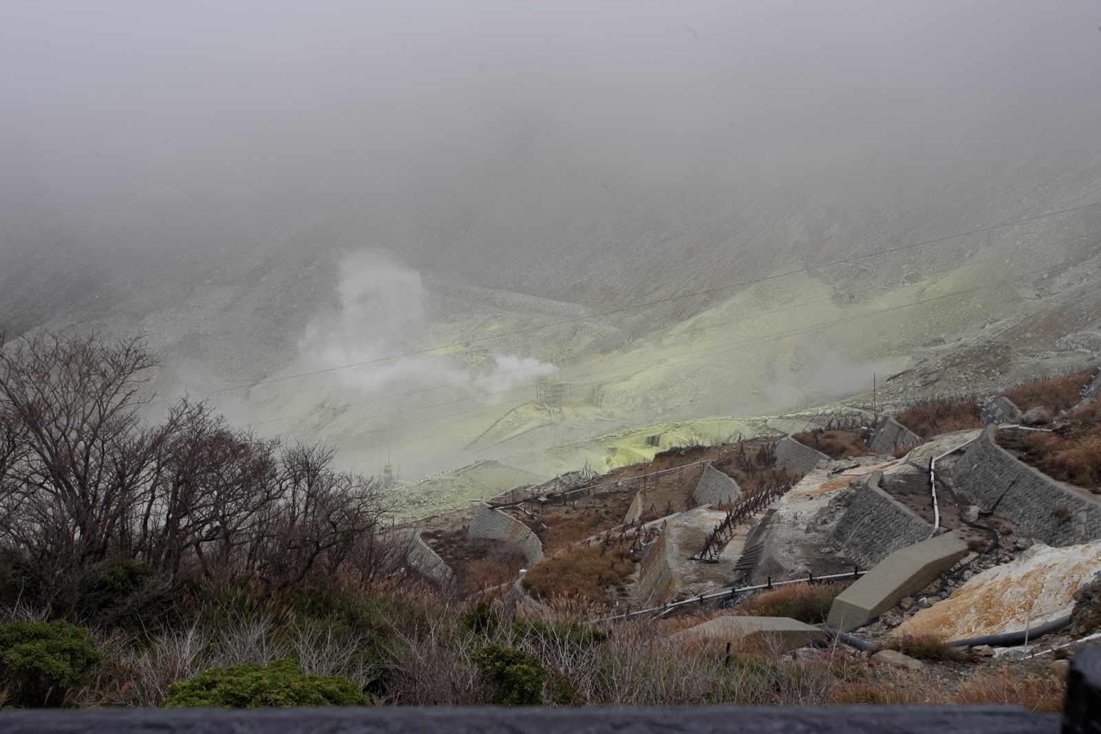 התחנה הבאה היתה ב-OWAKUDANI - מכתש הר געש שעדיין פולט קיטור.....