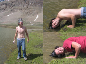 מאז קארגיל לא התקלחנו. המים בפאדום היו חומים כל כך שנראה היה שמקלחת תלכלכך אותנו עוד יותר משהיינו מטונפים. לכן עמי ועדי החליטו כבר בג'יפ שהם יחפפו ראש באגם של פנסילה, עוד יומיים בלי מקלחת לפנינו, לפחות שהראש יהיה נקי. החפיפה היתה פרויקט – האדמה מול האגם היתה בוצית ואי אפשר היה ממש להשען עליה. המים באגם היו מי שלגים קפואים כל כך שרק נגיעה של שניה בהם הפכה את האצבעות שלי לאדומות מקור. אבל בכל זאת – החליטו אז החליטו, אחד אחרי השני הכניסו עמי ועדי את הראש לתוך המים הקרים, צורחים מהקור, וחופפים את הראש. הם אפילו השקיעו ושמו שמפו. אחרי כל עניין החפיפה היה עשינו את המשך הנסיעה עד לרנגדום עם ריח שמפו נפלא בג'יפ, ושני נוסעים קפואים ומאושרים.